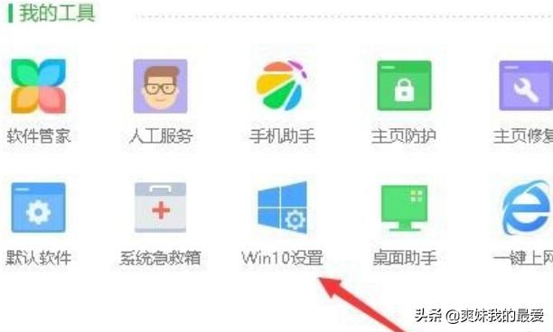 4、在右侧打开的新窗口中,点击“Win10设置”图标。;