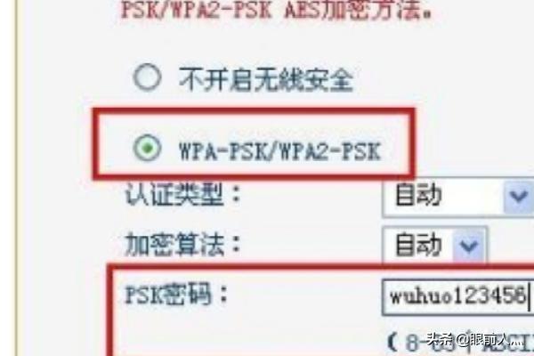 4、 选择“WPA-PSK/WPA2-PSK”,此种加密方式是目前最不容易被破解的加密方式。建议选此项。在“PSK密码”处输入您自己定义的密码。密码尽量复杂,防止被破解蹭网。