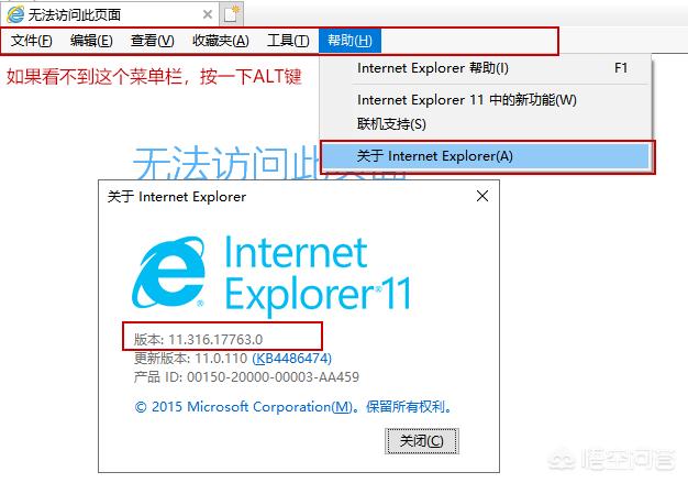 最简单的办法就是打开IE后,点击菜单里面的帮助,关于Internet Explorer,就可以看到IE版本信息了。如果打开IE看不到菜单栏,按一下Alt键就出来了。