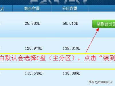 选择你想要安装的系统目标路径,点击选项“安装到此分区”,下一步(一般默认选择C盘即可,安装前请对该磁盘做好数据备份)。