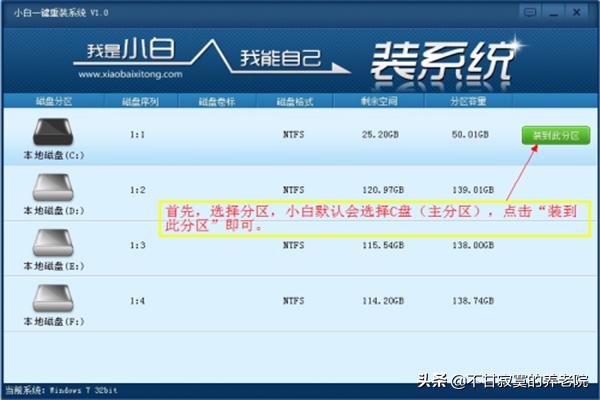 2、 选择你想要安装的系统目标路径,点击选项“安装到此分区”,下一步(一般默认选择C盘即可,安装前请对该磁盘做好数据备份)