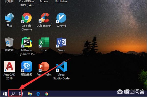1、首先在Windows10桌面,点击任务栏最左侧的小搜索图标。如图所示。