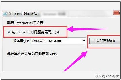 之后勾选“ 与Internet时间服务器同步 ”,并点击“ 立即更新 ”即可。