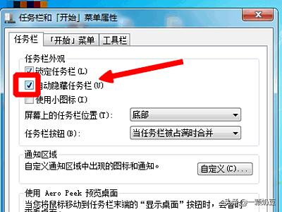 7、当然,如果我们有需要隐藏任务栏,我们只需把“自动隐藏任务栏”的复选框勾选上即可。