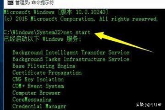 2、从打开的“命令提示符”界面中,输入“net start”并按回车以查看当前所有已启动的Windows服务。从中可以查看是否存在“Software Protection”或"Office Software Protection Platform”服务,如果不存在,则需要重启此服务。如图所示: